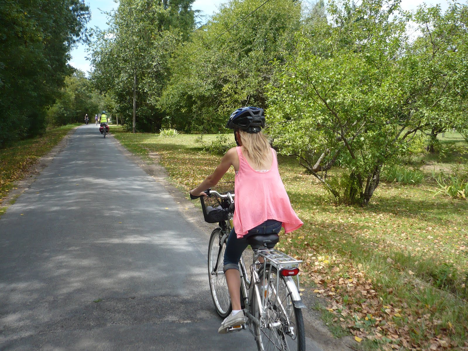 The first 20 k went very smoothly with hardly any effort. We were definitely getting better at the whole ride thing. I had even managed to get into the 2nd crank gear (that’s cyclist talk for “front wheel gear”) and felt pretty good about it. We had shopped for snacks before we left so the baskets were filled with goodies. This proved just too tempting for the children and by the end of the first 20 km, they had eaten most of the snack foods.